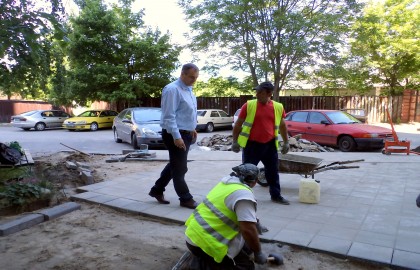 Дейностите по стартиралото в края на април облагородяване на пространството около най-големия жилищен блок със 150 апартамента на ул. „Генерал Радко Димитриев“ в квартал „Гладно поле“ вървят по график. Това констатира кметът на район „Източен“ Николай Чунчуков при инспекцията си на обекта.