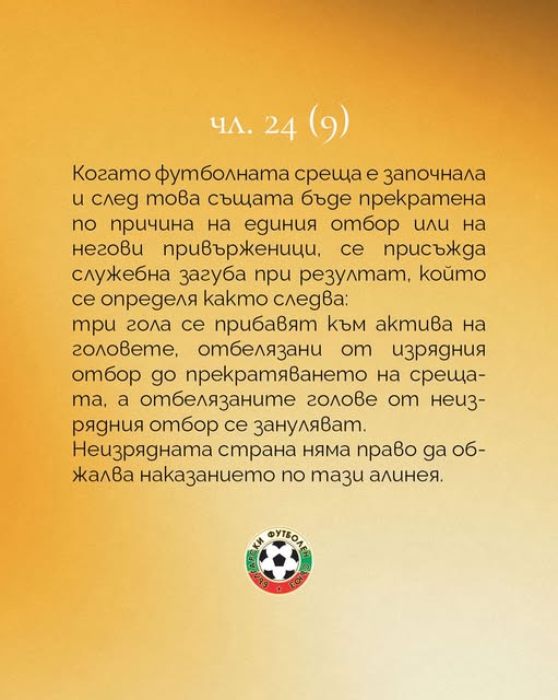 Наредбата за първенствата и турнирите на БФС ясно показва какво трябва да е решението след инцидента с феновете на Локомотив Пловдив, които удариха Даниел Наумов с бутилка в главата. Това дъкларирараха от управата на Ботев Пловдив.