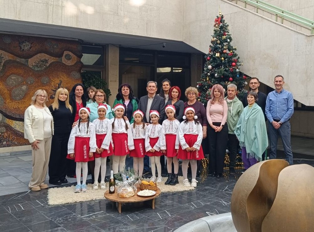 Децата, облечени в красиви народни носии, представиха коледарски наричания и песни. Към екипа на администрацията те отправиха пожелание: „Бъдете здрави, щастливи, усмихнати, силни, мъдри и истински, ценете топлината на домашното огнище и любовта на близките си“.