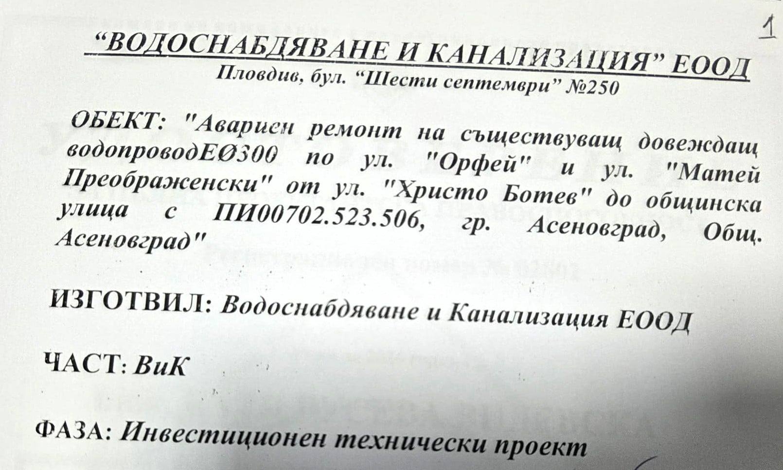 ВиК - Асеновград информира, че към момента водопреносната мрежа е изпълнена и вода има във всички квартали на града. Проектът, който предстои да бъде изпълнен в кв. "Баделема 2", вече е изготвен от ВиК - Пловдив и предоставен на община Асеновград. А именно, обект: "Авариен ремонт на съществуващ довеждащ водопровод Ф300 по ул. "Орфей" и ул. "Матей Преображенски" от ул. "Христо Ботев" до общинска улица с ПИ 00702.523.506, гр. Асеновград, общ. Асеновград". Проектът беше изготвен във връзка с честите аварии по трасето и с цел подобряване качеството на предлаганите услуги от експлоатационното дружество и намаляване загубите на водни количества. Така, за да се изпълнят целите ще бъде изграден нов водопровод.