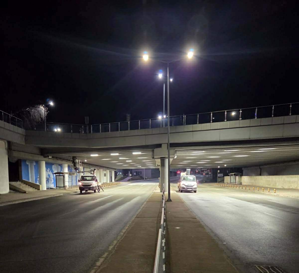 В рамките на дейностите са подменени и осветителни стълбове, като с това се повишава безопасността както за пешеходците, така и за преминаващите моторни превозни средства. Новото осветление значително подобрява условията за движение в подлеза и допринася за по-сигурна и безопасна градска среда.