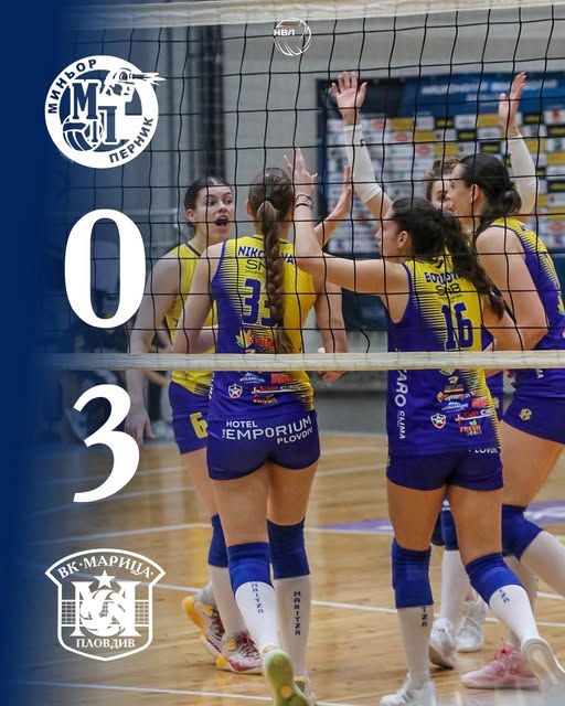 Волейболният шампион на България при жените Марица (Пловдив) спечели гостуването си на Миньор (Перник) в отложена среща от 12-ия кръг на Националната лига "Демакс".