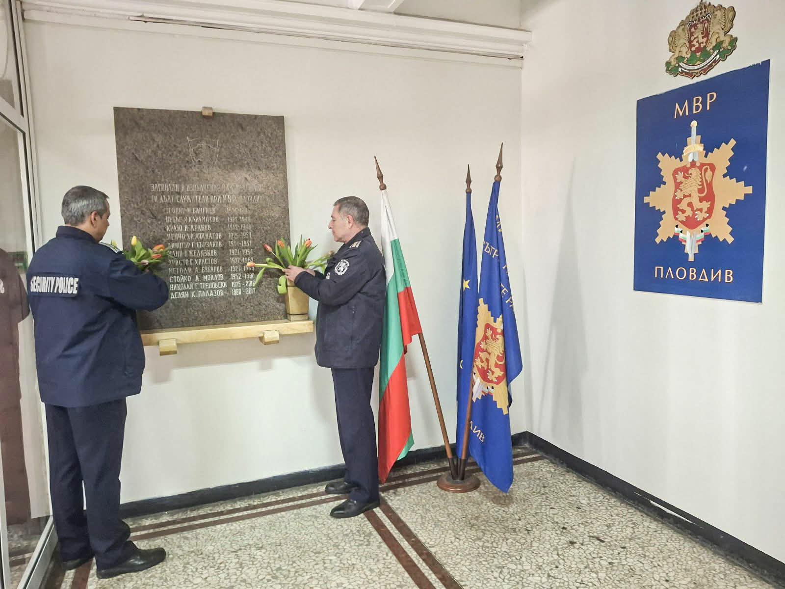 Към инициативата се присъединяват и служители от подразделенията на ОДМВР – Пловдив. Тази сутрин дежурните екипи застъпиха наряд с едноминутно мълчание, а светлината на патрулните им автомобили стана част от световната „синя вълна“, символизираща професионалната солидарност между униформените. С полагане на цветя пред паметната им плоча бяха почетени имената и на 11 пловдивски полицаи, застигнати от смъртта докато изпълняват служебните си задължения.