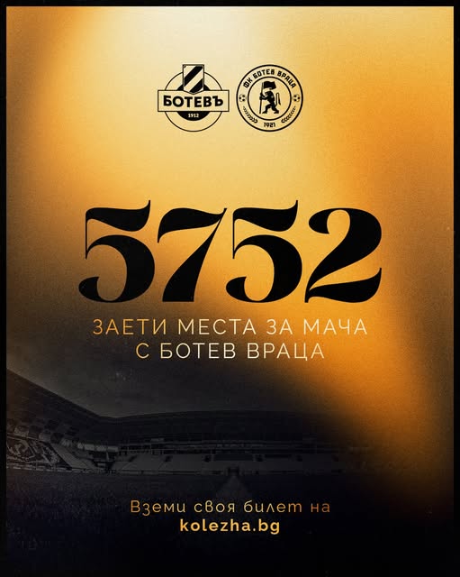 24 часа преди мача заетите места на „Колежа“ за домакинския мач с Ботев (Враца) от шампионата на Първа лига по футбол са точно 5752.