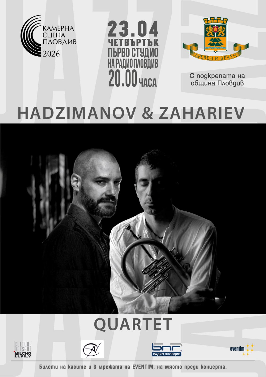 На 23 април 2026 г., четвъртък, от 20:00 часа, в Първо студио на Радио Пловдив, „Камерна сцена Пловдив“ представя „Хаджиманов & Захариев Квартет“.