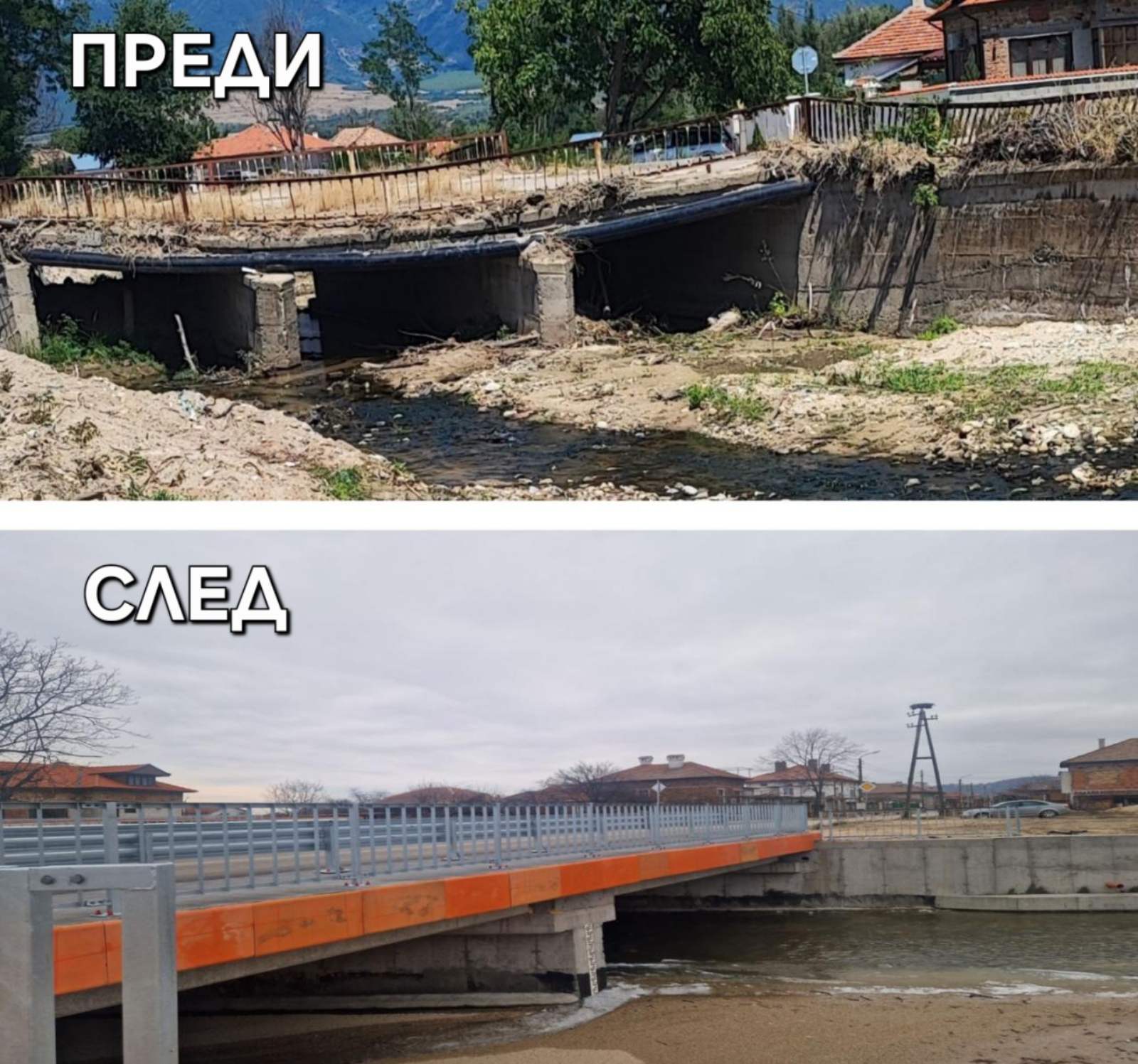 Община Карлово завърши изпълнението и на втория мост над река „Татлъ дере“ по ул. „Вл. Ленин“ в с. Каравелово. Дейностите по строителство стартираха през пролетта на 2025 г. при неосигурено финансиране, с цел изпълнението на долното строене на съоръжението, за да бъде изцяло завършено коритото на реката. След осигуряване на средствата от Междуведомствената комисия за възстановяване и подпомагане към Министерския съвет, за които Община Карлово през есента на 2022 г. кандидатства с цел преодоляване на последиците от наводнението на 2-ри септември, строителните работи по реализация продължиха. За възстановяване на транспортния достъп между двата бряга по ул. „Вл. Ленин“ в с. Каравелово е изградена нова стоманобетонна, двуотворна мостова конструкция. Пътното съоръжението пресича коритото на реката косо и е с два отвора от по 10 м осово. Връхната конструкция е стоманобетонни греди, обединени с монолитна плоча. Върху положената хидроизолация е изпълнена асфалтобетонна пътна настилка и маркировка. Върху изградените тротоарни блокове от двете страни на платното са монтирани нови ограничителни системи и предпазни парапети за пешеходци.